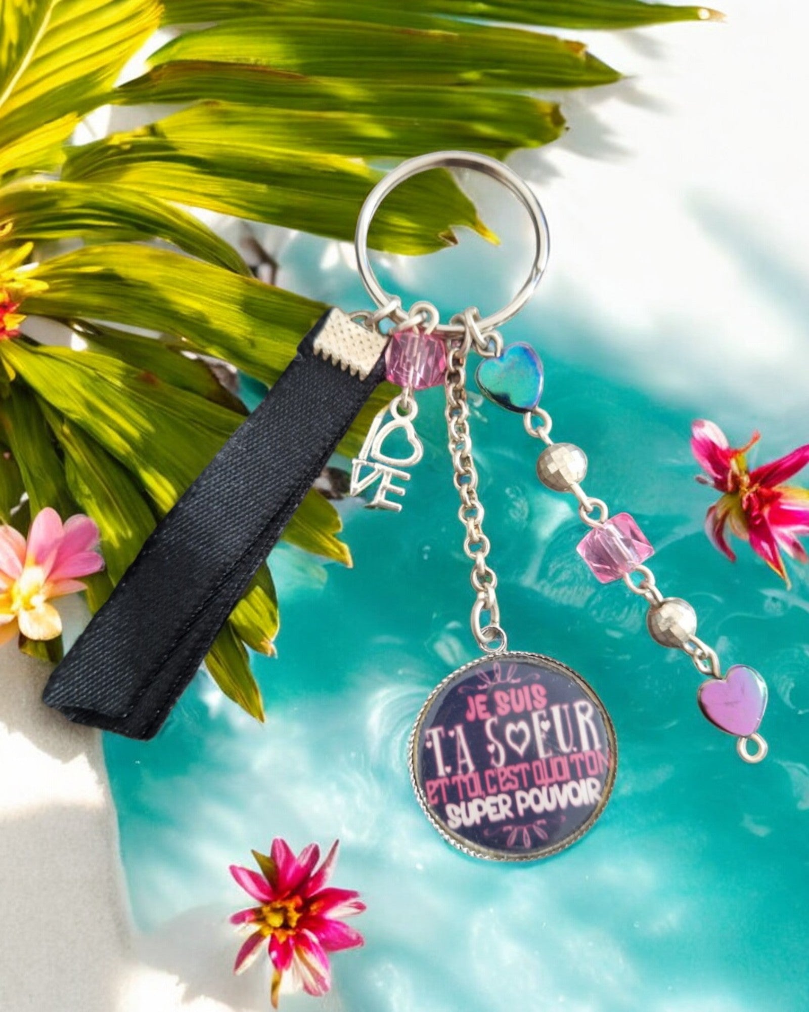 Parce que chaque sƓur est une hĂ©roĂŻne Ă  sa façon, ce porte-clĂ©s fait main cĂ©lĂšbre ce lien prĂ©cieux avec une touche d’humour, de tendresse et de style.