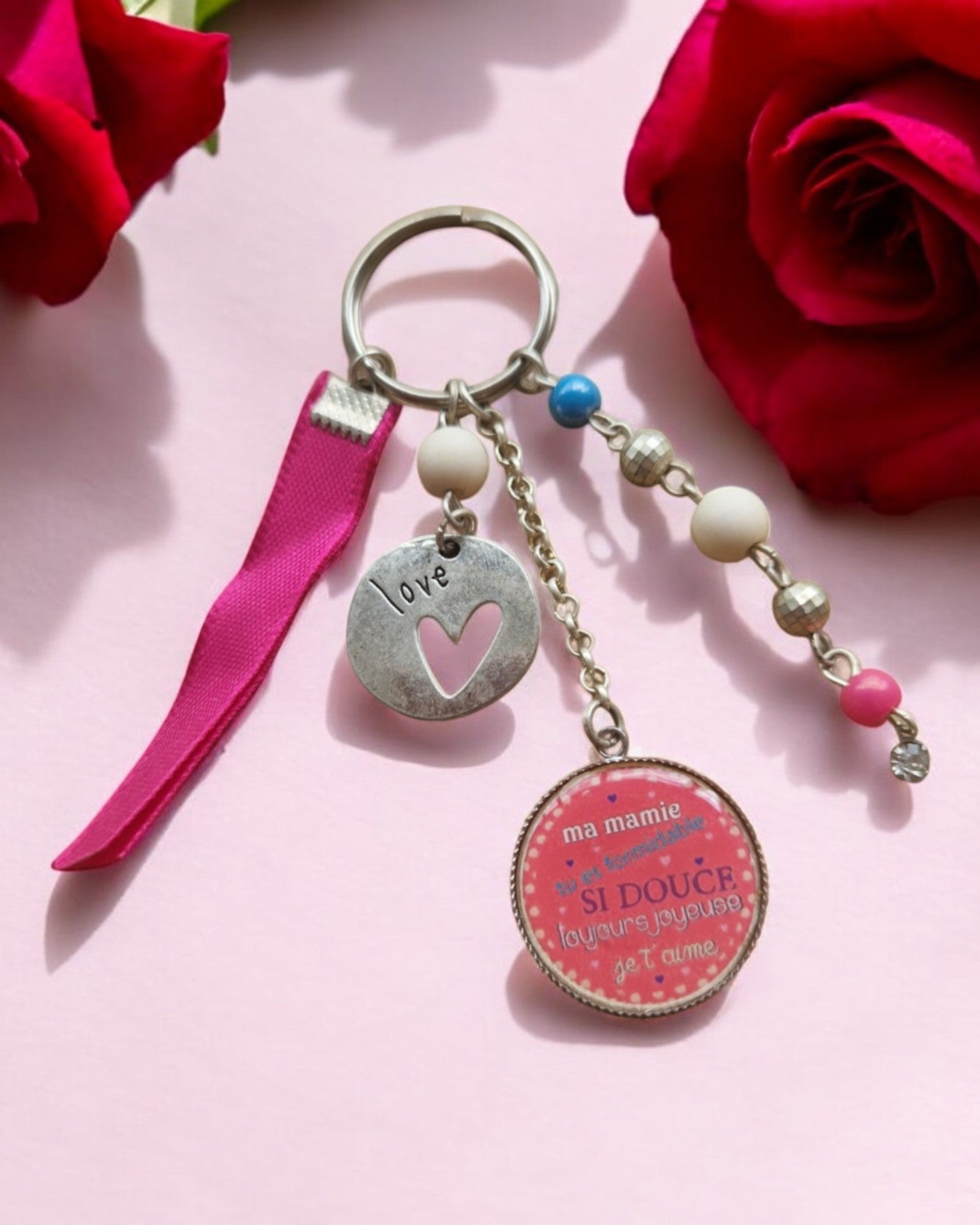 Parce que les grands-mères sont des trésors de tendresse et de joie, ce porte-clés rend hommage à tout l’amour qu’une mamie peut offrir. Fait main avec soin, il allie douceur, originalité et un message affectueux qui fera fondre le cœur de celle qui le recevra 💗