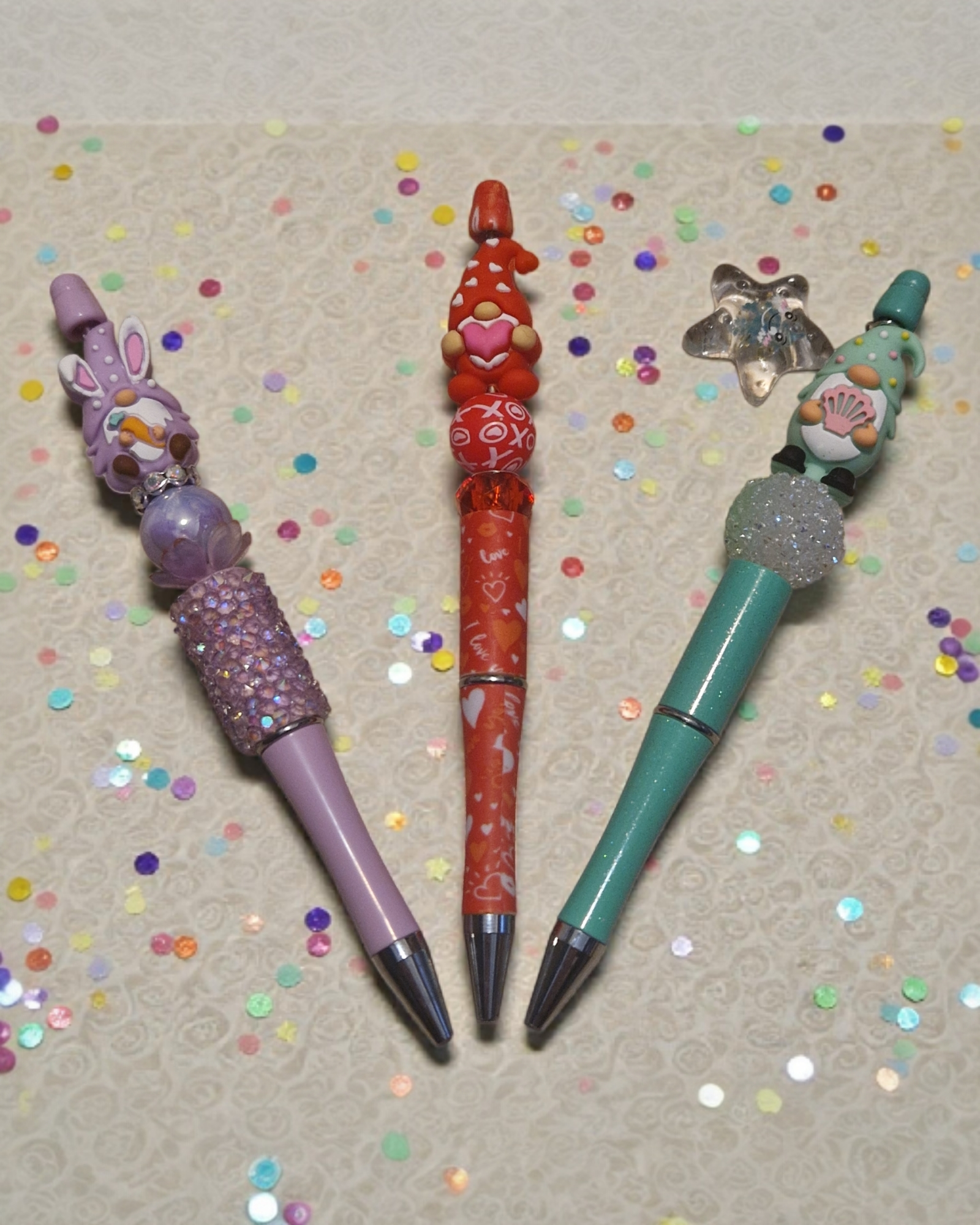 Dotés de perles scintillantes et d'embouts colorés, ces stylos allient douceur et créativité pour transformer chaque mot en moment magique.